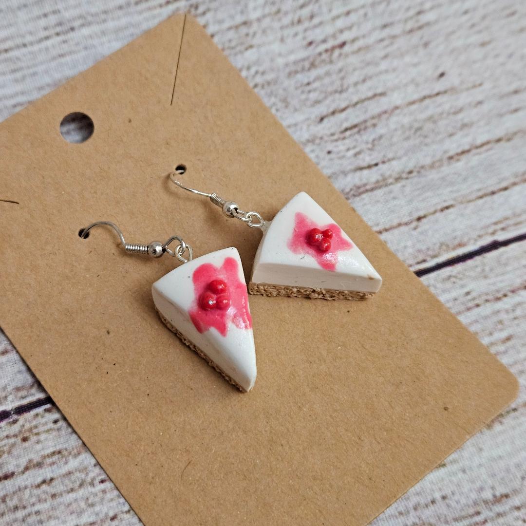 These irresistible Cherry Cheesecake Earrings are handmade from polymer clay, boasting elegant sterling silver dangle posts. The glossy glaze adds long-lasting durability and shine. Perfect for pierced ears, they make a sweet and stylish addition to any outfit.