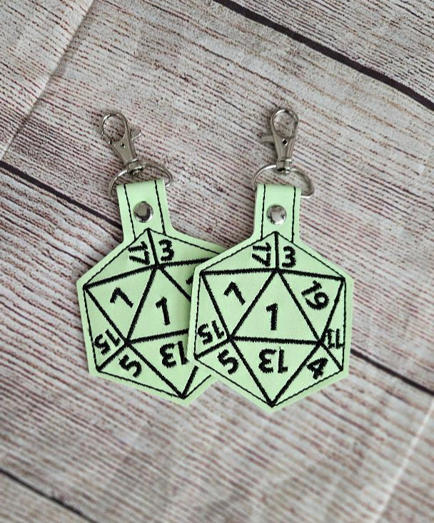 Illuminate your gaming experience with the Dragon Dice Glow Keychain! This quirky keychain features glow in the dark vinyl and a playful design perfect for any gamer. (No need to worry about losing these dice, they're not real!) Spice up your keys with this unique accessory.
