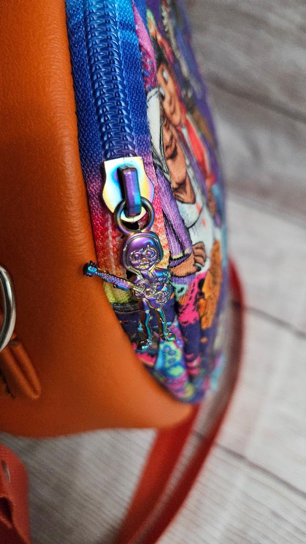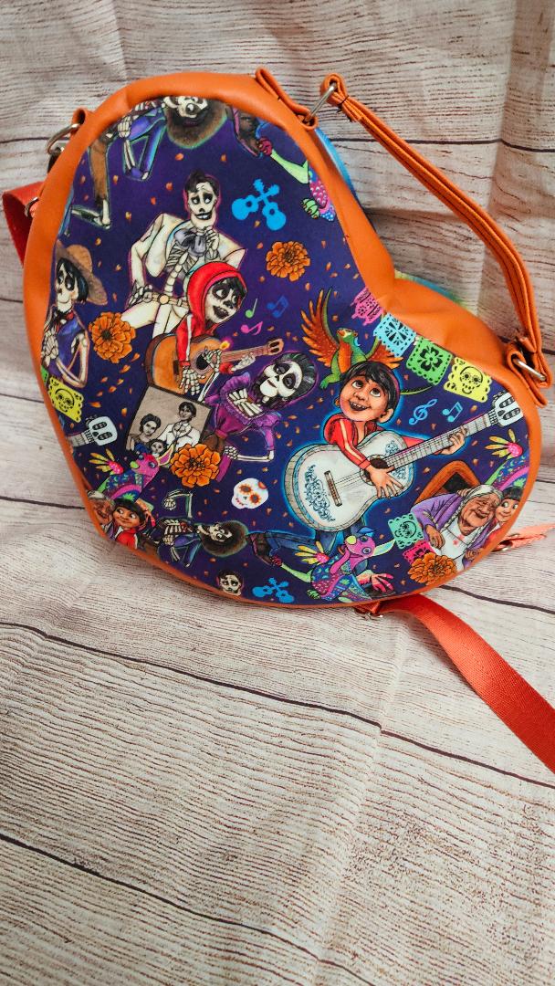 Indulge in the colorful and vibrant celebration of "Day of the Dead" with our Flawed Coco Heart Bag! Despite being a tester bag with minor imperfections, it boasts a waterproof lining and an adjustable crossbody strap. With a zipper pocket and custom zipper pull, it's both functional and stylish. The front has a flawless design, but the top and back add a unique touch with slight puckering. Made with custom cotton fabric and high quality vinyl.