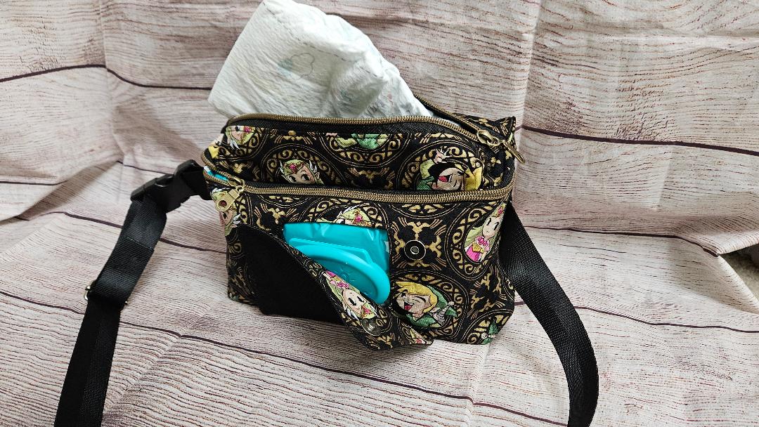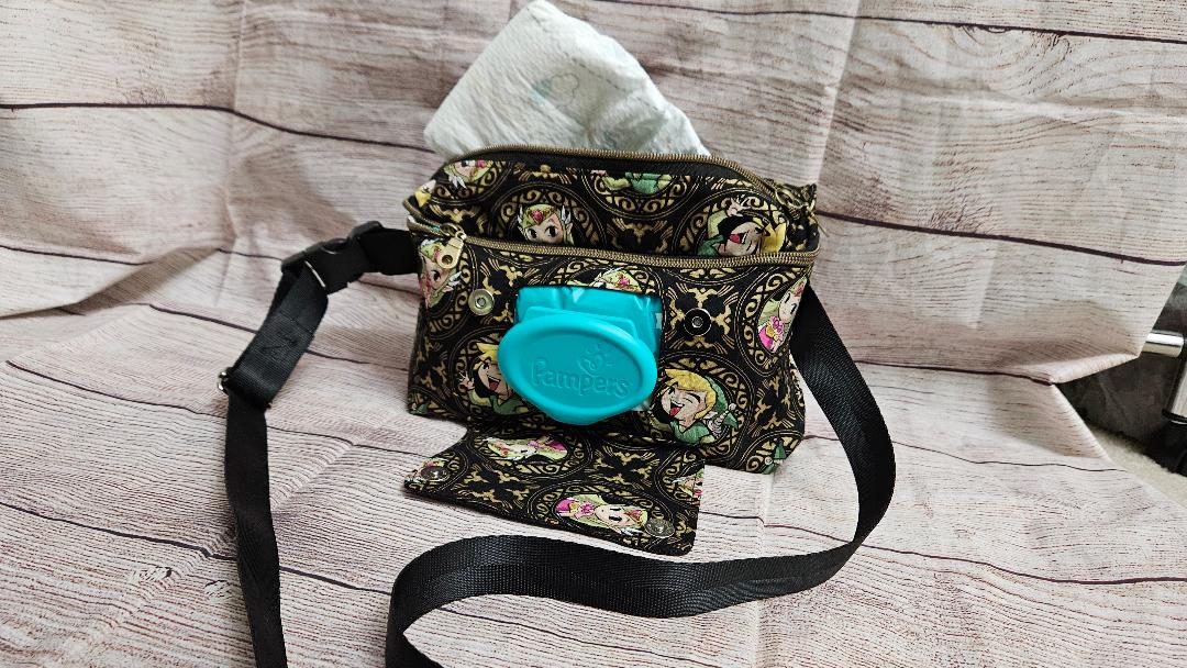 Introducing Link's Diaper Oopsie Pouch! Inspired by Link, this pouch is perfect for on-the-go diaper changes. No need to carry the whole bag, it fits diapers, wipes, and even your phone. Wear it as a fanny pack or crossbody. Made with waterproof lining. Plus, the strap works perfectly, even if it was put on backwards!