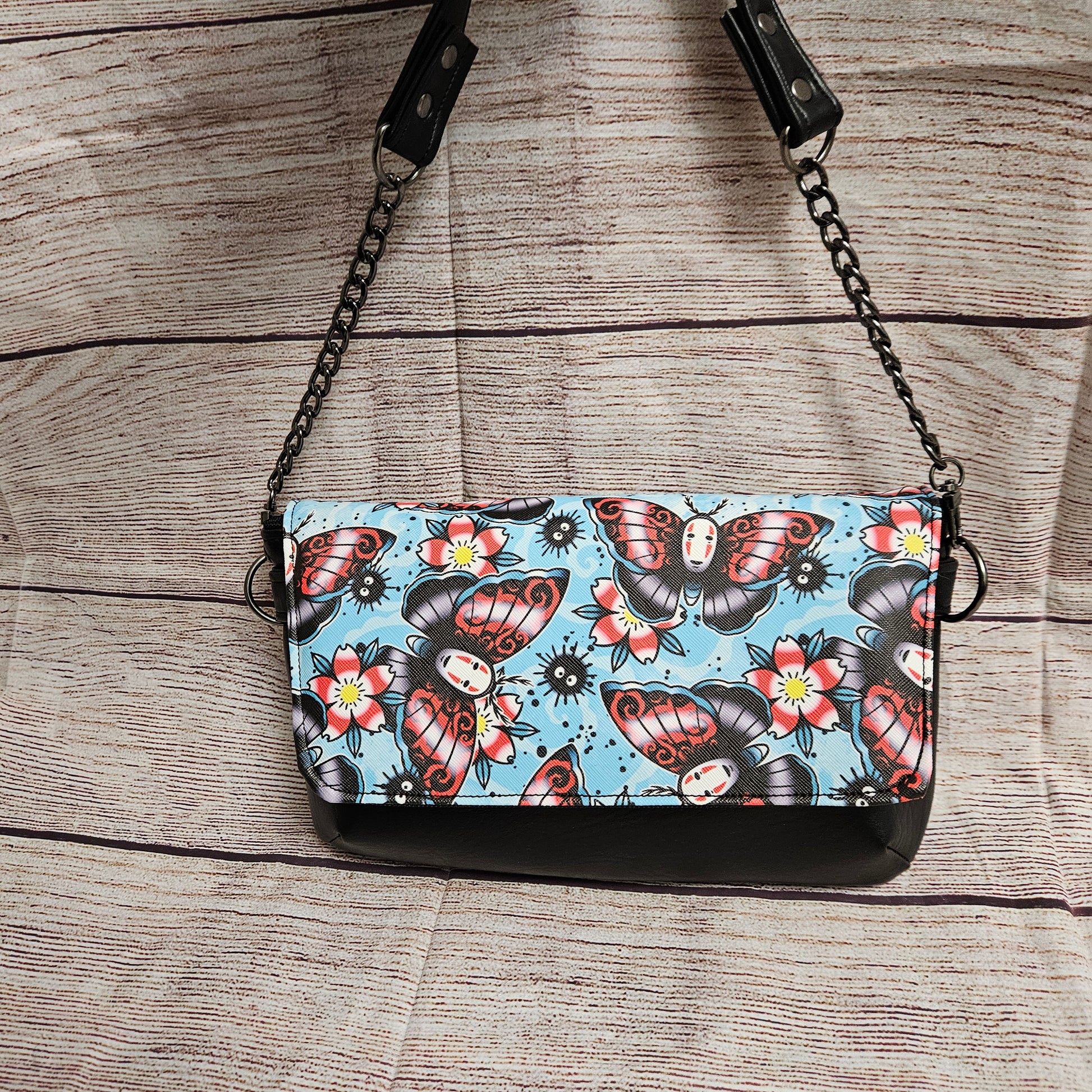 This clutch is a perfect go to for any outfit. A basic clutch with a chain strap. Can be worn on the shoulder as well. Waterproof lining and 2 magnetic snaps for closure. Approx. 9" wide and 5" deep. Making it the perfect size for a night out. Each item is handmade therefor pic placement will differ for each bag.