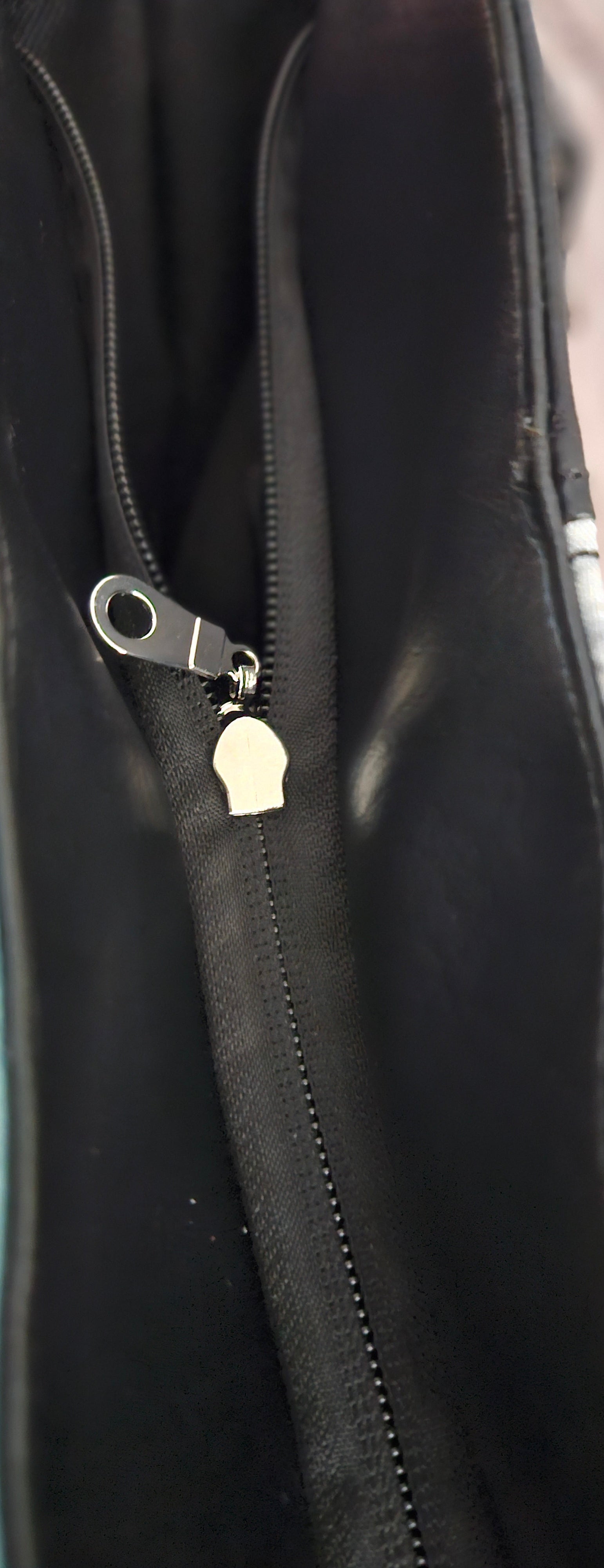 The Oopsie Goth Girl Bag is the perfect accessory for everyday use. Made with cotton and vinyl, it boasts a waterproof lining and an interior zipper pocket for added functionality. With a semi-slouchy look, this bag measures approx. 10" wide and 8" deep when zipped. Don't let the backwards zipper fool you, this bag is both fully functional and spooky cute.