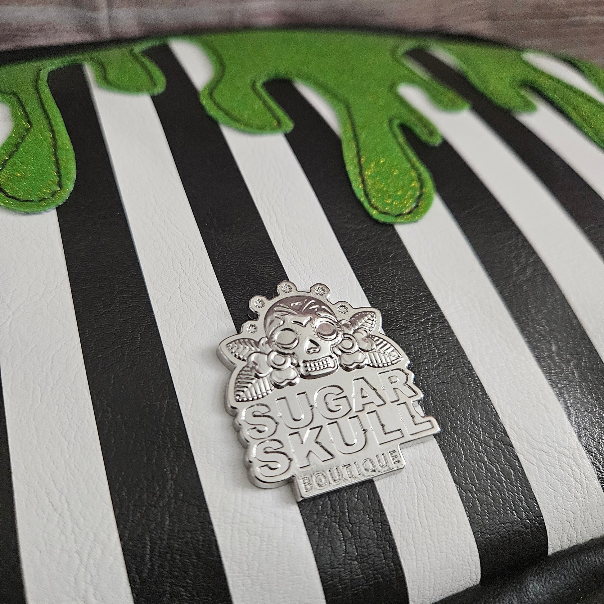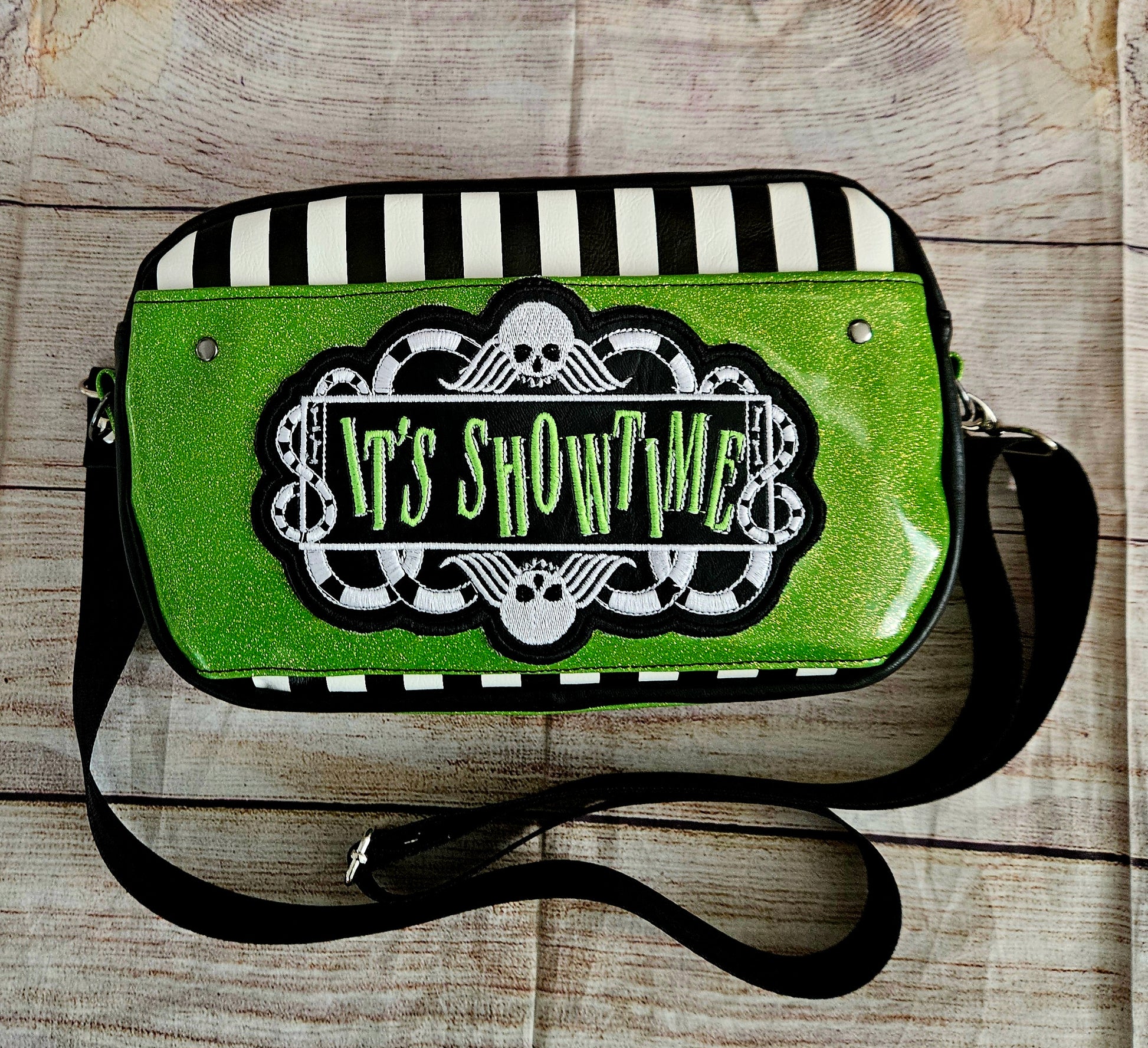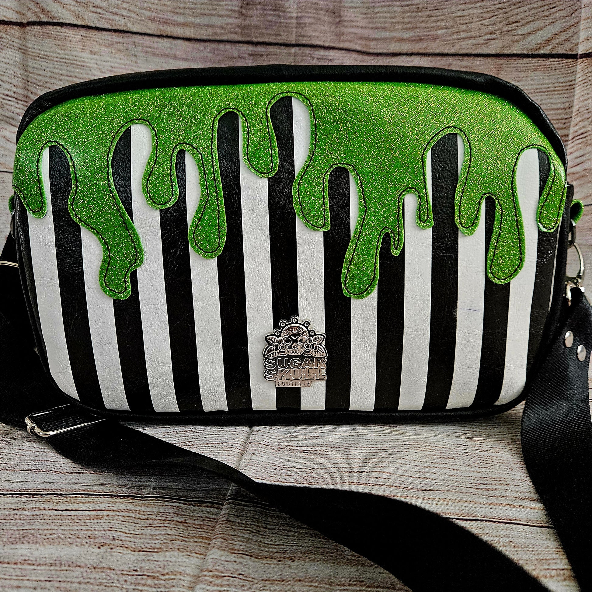 This is such a great bag! Not only is it the perfect size but it also has 1 slip pocket in front, 2 slip pockets inside, a zipper pocket inside and 8 card slots!!! No need to carry a wallet. You have it all in this bag. It has a detachable and adjustable crossbody strap. It is lined with a waterproof fabric and the drip on every bag is different. And did I mention the green is sparkly? Giving it the extra uniqueness! At it's widest point it measures approx. 10" and is approx. 6 1/2" deep. Trust me you won't want to switch up your bag you'll love this style too much!
