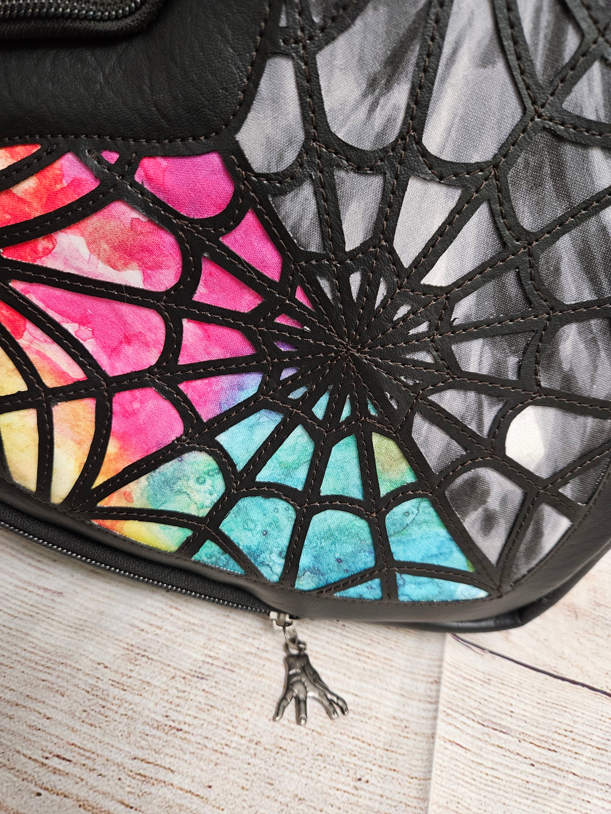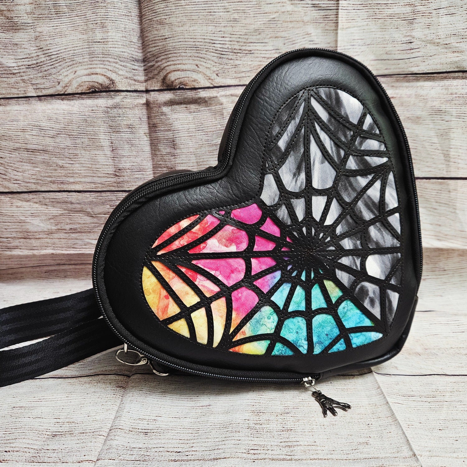This beautiful bag covers both of your personalities. Spooky and grey but also rainbows and sunshine. Inspired by a special spooky girl it is made with high quality vinyl and a waterproof lining. It has a detachable crossbody strap and has a zippered pocket inside. At it's widest it is approx. 10" and approx 9" deep. Please expect slight variations from item to item since they are all handmade.