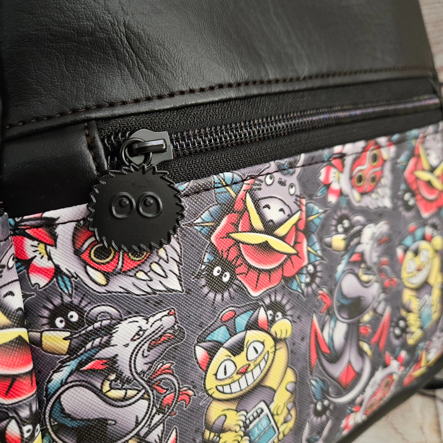 Get ready to show off your love for Studio Ghibli with our Anime Mini Backpack! This mini backpack features ghibli-inspired tattoo style art, carefully crafted with custom and high quality vinyl. Perfect for carrying your essentials while expressing your unique style. Made with a waterproof lining and adjustable straps.